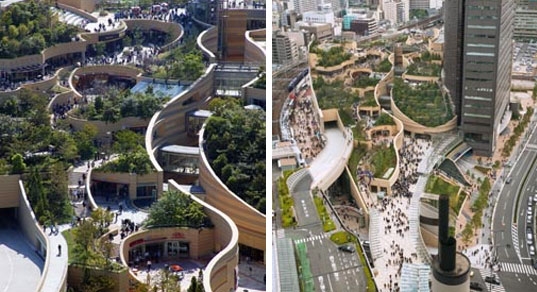 真个计划包括一个30层的办公楼和裙房商场,但真正让难波商场特别的地方就在于他的屋顶公园。