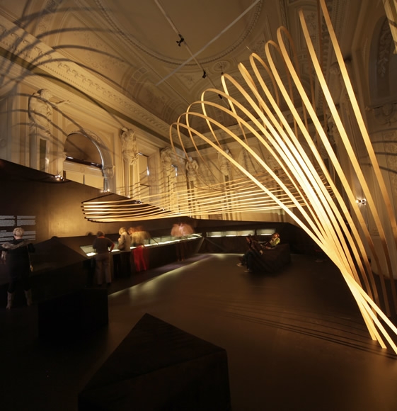 胶合板的魅力无限。WWAA Architects和装置艺术家Boris Kudlička合作了这个表式这音乐美丽的艺术作品,用以对肖邦表达敬意。这些流动的锦带具有极大的冲击力。