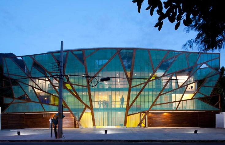 学校的外表皮由穿孔氧化铜板和玻璃组成。铜板的小孔可以阻止雨水,但是可以穿过光,因此,到了晚上,铜板就变得有些透明。