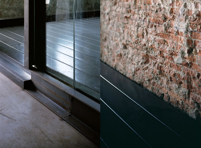 contextualised steel profiles, with no treatment, become benches, bars, raised floors,