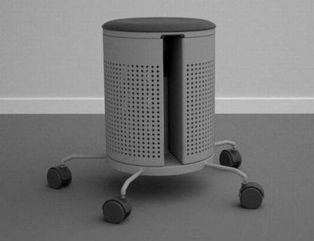 纸篓和椅子是办公室里不可或缺的物品。这款转椅将字纸篓安置在了转椅椅垫下方,要想扔垃圾,您还得站起来。虽说扔垃圾的步骤变得繁琐了,但它却让您无形地进行了更多运动,何乐不为呢?