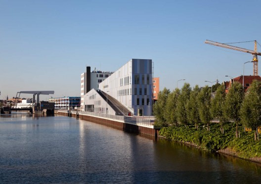 这个建筑呈现出复杂的结构,部分是因为消防队员的房间必须要安置的适宜的地方,以满足紧急出发的需求。设计从桥基一直向上延伸,最后的办公空间高高地冲着火车铁轨,上下高度达20米,形成入口到上层的形式变化。屋顶是一个停车空间,在这里看不见下面的首层,清晰强烈的倾斜线条呈现在建筑前后,形成停车场的入口通道。