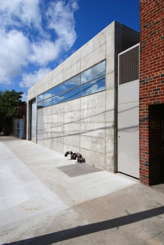 这是纽约东布鲁克林一个工业复兴区,事务所将一个工厂重新加工变为一个艺术家工作室。原来破旧的表皮和不稳定的地基被灌浇混凝土表皮代替,这一新表皮反映了附近社区的统一状态,即入口都是一个很小的钢铁门上的切口。当人们在工作室中穿行,会经过一系列的落地玻璃开口,它们使工作室既保留私密又有透明性。不管是从工作室还是从起居室一侧,人们都能看到建筑的整体高度,这与原有建筑的工厂性质一致。没有室内的墙壁是与建筑边长相接触的,外面的包裹被重新开发,以提高环境效率和热辐射地板技术。