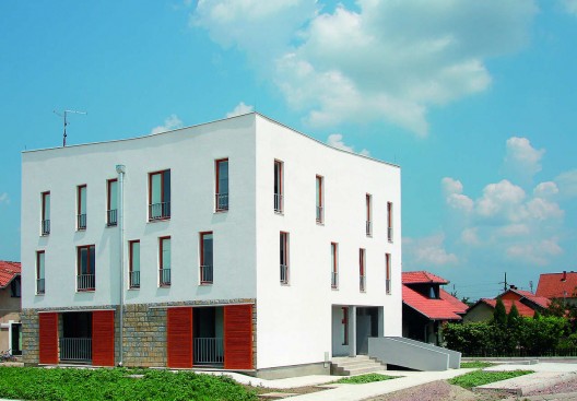 这是位于塞尔维亚Valjevo的一个社会住宅,简单的轮廓勾勒出清新淡雅的设计,屋顶不是水平的直线,而是带有弧度的线条,简单干净的白色表皮加上窗户边框的一抹红,与蓝蓝的天空和周围其他住宅的屋顶相互映衬,美丽大方。