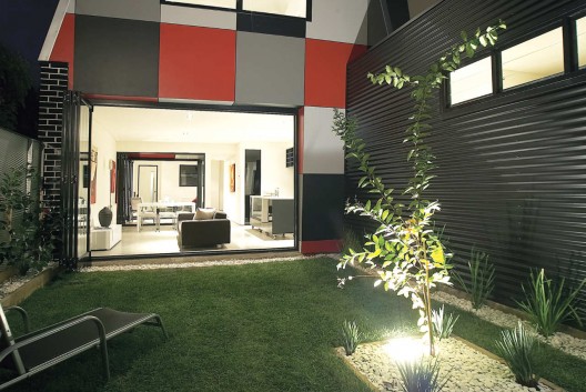 这个住宅是对郊区乡村住宅和地区规划法案的一种回应,它是努力在提供一种廉价的住宅形式,挑战传统的欧式郊区住宅形式。项目的目标不是为了彰显事务所对地区问题和建筑文化问题的独立看法,而仅仅是想通过有效简单的标准型建筑方法创造出不一样的可能。因此设计采用了砖,涂漆的压制板面,彩色的带状屋顶和覆盖,石膏板等等。
