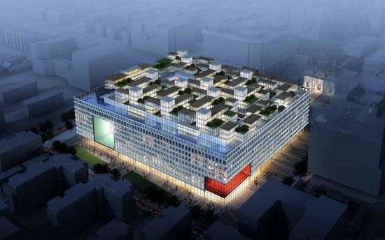 北京王府井中心是一个混合用途的建筑,由 Latitude Studio设计,项目的做法考虑了不同层次的空间条件。