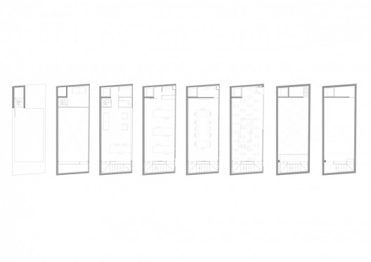 这是建造在狭小场地内的一个住宅,为了能在这一有限空间内创造工作空间和起居空间,设计师采用了很多直接的方式,如对自然光的控制,还有室内不同的空间高度,还有尽量减少房间内部的分隔,最后楼梯和服务区被安排在了最尽头,中心的空间则被空了出来。房屋的空间条件需要设计师在紧凑的环境内解决技术和功能的所有问题:最后生成一个带有狭窄规则开口的墙壁,顶部带有唯一开口,和传统的格拉纳达住宅相同,它临街的一面封闭,向着天空和花园的面打开。