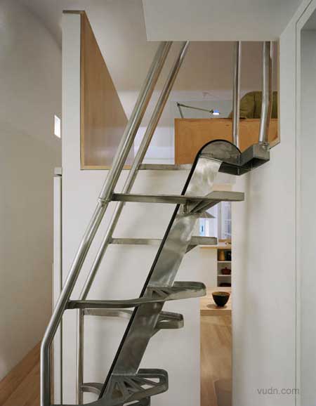 纽约Interlocking公寓室内设计。混凝土拱形天花板有起伏,两平台是由一个L形的T型台交叉,盘旋组成壁橱,从客厅到入境大堂,创造一个连续的视觉流动,而加剧了独特的功能, 所有的水平表面和T型台覆盖着枫树木材,而其余的垂直表面漆成白色。一个清晰的玻璃分割划分的休息区域,采用自然光照明,创造舒适的空间。