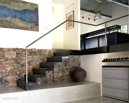 改装一个老谷仓成为一个度假山庄。简洁的外观覆盖了错综复杂的内部细节。每平方英寸的空间都被利用,从新酒窖到阁楼,以及楼梯下空间改为新茶水间 。整体效果就是一个现代派室内被包裹在温和的老谷仓里。