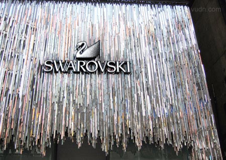 由Tokujin Yoshioka(吉冈?匀?设计的在东京银座施华洛世奇旗舰店“水晶森林”,不锈钢件材质外观反射出璀璨的光芒,作为店铺的关键要素,门面上覆盖着不锈钢镜面浮雕。从不同角度和闪耀着光芒犹如一个“水晶森林”反映了不同的场景。 商店内,墙壁上装饰着白色浮雕,整个空间闪耀灿烂。,吊灯发出像晴天瀑布的光芒,像一个虚幻的空间。