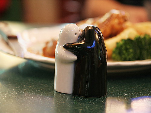 此刻它们还只是两个设计趣致的瓶子,站在碟子旁边,一个用来洒盐,一个用来洒胡椒。下一刻它们就已经开始ki了。