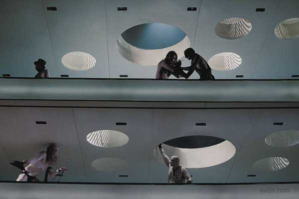 一共有三层平台,通过提高和降低的平台,移动和反应的演员在平台移动,变化,光照的空间出现在舞台之间,及边缘的平台,歌剧音乐确立新的视听影响,为观众产生新的感知经验。