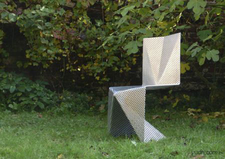 这款金属椅子应用了一体成型技术,是由整块铝板铸成。虽说如此,设计师依旧给椅子添加了精致的褶皱,提升了硬梆梆的金属椅子的舒适度。椅子的倾斜板面配合上面的孔洞让椅子即使在户外也可以保持干爽。