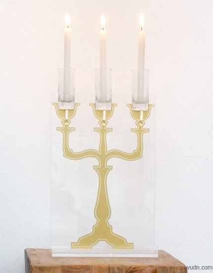 这一系列灯具需要与壁纸结合起来装饰,方才显得有趣。那款所谓的落地阅读灯,其实是壁灯配合了阅读灯灯柱模样的壁纸打造出来的假象;另一款烛台灯,却又是壁灯加上烛台壁纸给视觉设置的陷阱;至于床头灯,其实不过是一款灯具外形壁纸配合壁灯的装饰杰作罢了。