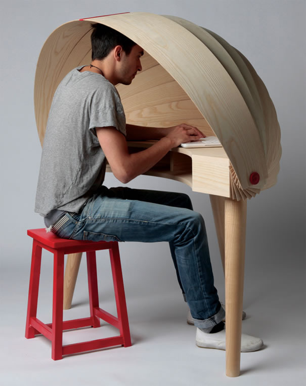 现代越来越开放的社会,每个人都会想要属于自己的空间。即使是一个拥挤的房子,都无所谓,因为她不占地面太多的面积,只是空中的面积会多一点。只要桌子上方的罩拉起来,那就是你的世界。尺寸L1200*深600*?1500,材料是粉煤灰表面贴皮罩,桌子四条腿支撑你的世界。