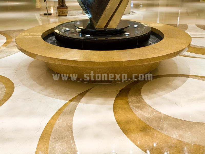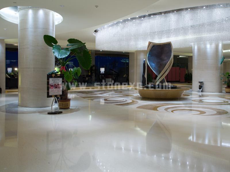 亮点:旋转楼梯,地面无缝拼花 、大堂背景墙拼花。