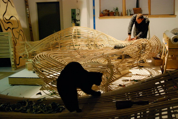 美国设计师matthias pliessnig的作品囊括了手工艺、艺术和设计三个概念。他的作品将历史悠久的工艺技术和现代的数字美学结合起来协同工作,在运用手工艺人技术的同时,结合数字技术将它们实现出来。最近他刚完成了“amada”作品,这个设计是为一个私人业主设计的,这位业主希望在自己的起居室里放置一把流动的长凳。设计师希望让使用者可以在椅子上轻松的观察到各个方向。这个长凳全部由被风干的白色橡木制作,然后经高温蒸发被弯曲成优美的曲线。