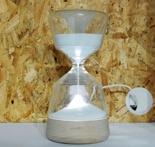 “night night”是一款能够伴人入眠的台灯。这个台灯的设计者是比利时设计师vanessa hordies,他借用了沙漏的形式,将真正的灯泡埋在沙子下面,将卧室中的灯光淹没,制造出朦胧的灯光效果。当你把沙漏倒转,其中的定时器就会启动,并将时间设定为15分钟,而这也正是人们入睡所需要的时间。