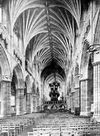 英国教堂在平面十字交叉处的尖塔往往很高,成为构图中心,西面的钟塔退居次要地位。索尔兹伯里教堂的中心尖塔高约123米,是英国教堂中最高的。这座教堂外观有英国特点,但内部仍然是法国风格,装饰简单。后来的教堂内部则有较强的英国风格。约克教堂的西面窗花复杂,窗棂由许多曲线组成生动的图案。这时期的拱顶肋架丰富,埃克塞特教堂的肋架象大树张开的树枝一般,非常有力,还采用由许多圆柱组成的束柱。