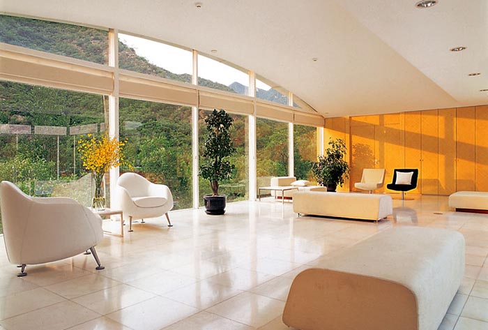为了让宽阔的基地发挥最大优势,我们引用了中国传统合院建筑的概念,让中庭坐落住宅正中,房间则以基本的方形配置围绕庭院排列。