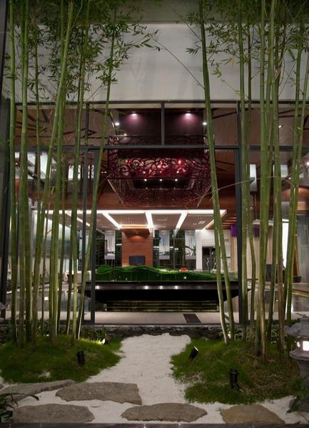 传统建筑中天井在这里,以生生不息的青竹形态,充分体现了中国建筑文化的科学性和生命力。而VIP区也通过青竹中庭形成了无形的隔断并营造了相对的私密空间。