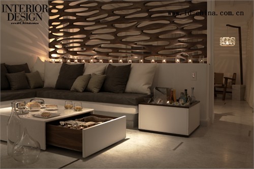 很多人说,米克诺斯岛就像希腊爱琴海上的明珠一样,美丽而动人。也正是在这里,Rockwell Group为岛上的Belvedere酒店先后完成了两期整修工程。在2007年夏天,Rockwell Group为其完成了第一阶段的整修工程,即对公共区域面积的扩展,其中包括Belvedere酒店的餐厅,酒吧,泳池区域以及Matsuhisa餐厅。在2009年,Rockwell Group又完成了该酒店的2期整修项目,负责设计了3款客房样板间以及相关三类客房的装修工程。像前期设计酒店的餐厅和泳池区域一样,Rockwell Group希望此次的设计仍然能体现出客房内日夜转换的效果。 在标准间,小型套房和Belvedere套房中,Rockwell Group运用经典的Mykonian材料的大理石与其他奢华的自然素材相混合。白色,暖棕色与绿色的基调衬映着Mykonian,爱琴岛和屋外的海景。从推拉式办工桌,卧床下的储物柜,梳妆台,伸缩式顶板,餐桌,电视,到拥有全方位服务设施的酒吧推车,都体现了设计先进的内置设施与红木雕刻的木制品以及屋内的其他家具的融合。房屋内的滑动式屏风则给客人们提供了一个可开亦可闭的灵活空间。 每间客房和套房都拥有独特的转换设施可以转换房间从白天到夜晚的不同感觉。一触式调光开关可以调整房间和阳台上的灯光,紧邻镂空雕刻的红木屏风隔断边缘放置的烛火也让傍晚室内的氛围平添了一份静溢之美。透过镂空纹理展现在墙壁上的粼粼光影,有如水波纹一样,和室外的爱琴海相互辉映。Belvedere酒店的工作人员也会为客人们准备酒吧台车,木质的床上托盘和冰桶来营造出私人夜晚空间亦或是作为娱乐用途的夜晚派对空间。