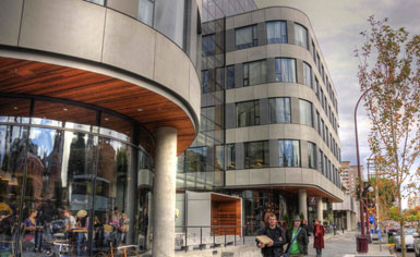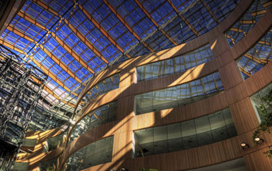 D' Ambrosio事务所为Jawl投资公司设计了一座大型办公楼,名字就叫“中庭”(Atrium),目标是获得LEED金级认证,并融合在周围的城市背景中。为此,“中庭”的高度只能算中等,天然的耐用材料对于邻里来说形成了稳定和长久的姿态。