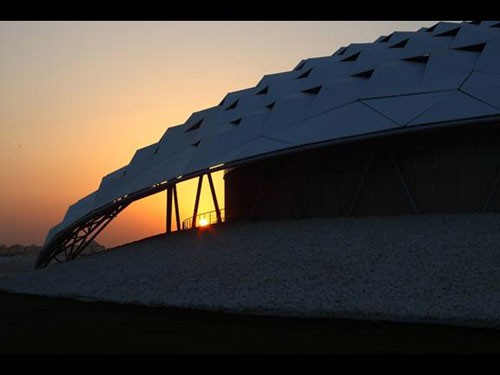 这幢建筑物的特点是有一个可以旋转的罩形屋顶,它能够自动打开或关闭,起到遮阴的作用,并且最大限度地控制气候。
