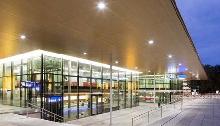 尽管所用材料十分简单,但是建造和装饰工艺却很精致,因而附属建筑有了自己的识别性和场所感;而且尽管建筑的正立面都是玻璃,但屋顶的光电板和遮阳玻璃等都降低了建筑的能耗。所有的乘客等候区都没有设置障碍物。该项目已于2010年建成。