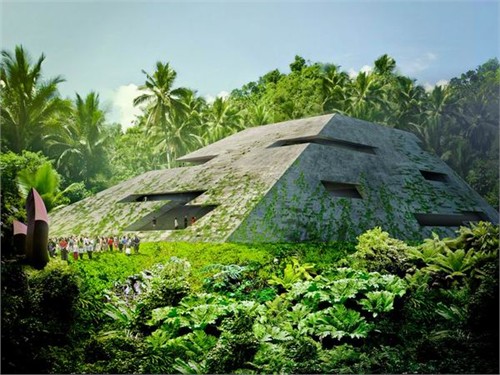通常墨西哥的金字塔都是坚固而巨大的体量,只有一小部分空间作为进入建筑内部的入口。基于这一特点,我们想在金字塔中设计一系列缝隙空间,让参观者不仅能好好欣赏博物馆的展品,同时还能领略独特的森林景观。