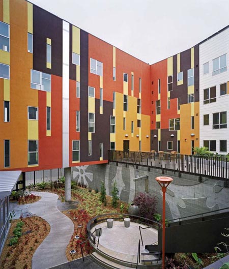 这座建筑有116套出租的单元,并配备了小卖部和服务设施。为了反映该地区邻里的美籍非裔的特征,建筑的设计细节取自于非洲的传统图案和色彩。其喷涂的颜色和窗户的安排模仿了非洲的织物,如同包裹在外墙上的一床色彩斑斓的"被子"。