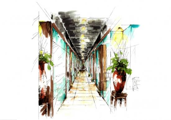 任清泉设计作品:广州凯怡牙科会所手绘方案图-等待区过道效果图