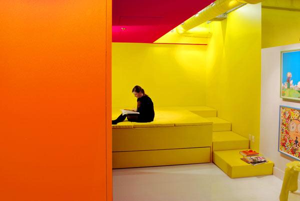 在蒙特利尔市中心,这间色彩丰富的loft由加拿大设计师Jean Verville为一位艺术收藏家打造,是不是令我们眼前一亮?这是一个开放式的住宅,需要承载大量的收集艺术品和充足的存储空间。丰富而跳跃的色彩,仿佛糖果一样的缤纷有趣。大量纯色的使用,空气中都洋溢着活力的气息。明黄、天蓝、草绿、橘红……在这样的空间里,心情一定会是愉悦而灿烂的吧。