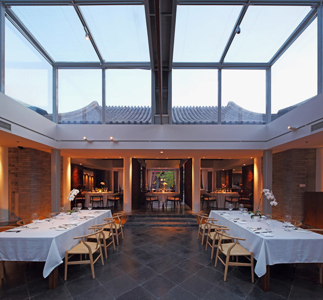 中国建筑事务所非常建筑最近完成了北京“京兆尹”餐厅设计,这是一座四合院里的素食餐厅。为了突出愉悦宜人的就餐环境,建筑师张永和延续了他对四合院空间的研究。两个庭院作为餐厅的核心焦点空间,其中一个保持原貌,作为室外空间;另一个添加了玻璃屋顶,成为就餐区。悬挂的八面体屏风创造亲密飘淼的空间氛围。