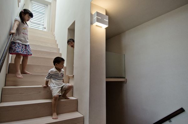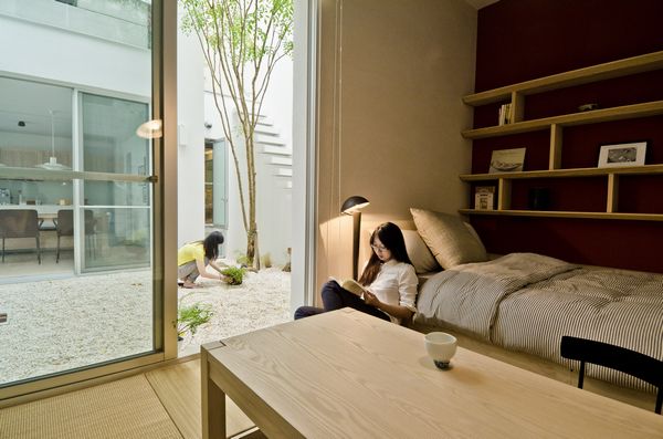 单元品字形的平面围塑出一个内庭,让生活空间从地面透到天上。内庭不但是一楼家庭起居生活的弹性延伸,也是一种使住宅能更贴近土地的重要媒介。