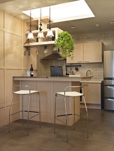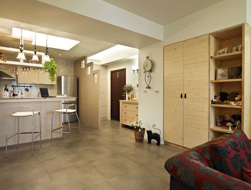 在空间机能的安排,设计师于怀晴考虑屋主一人居住餐桌实用性较低,因此改以吧台式设计。