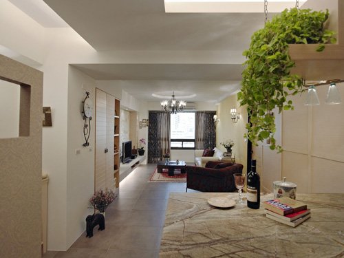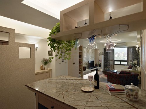 喜爱欧洲风情屋主,期待空间有着石材堆砌的质感,感性营造犹如地中海漫游的生活情节。浅色立面施以深色门斗,框定了女主人的私密场域。