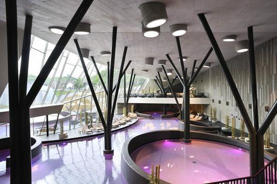 Orhidelia 健身中心是Enota 建筑设计事务所过去几年在Terme Olimia 温泉度假村设计项目中的第三个项目。由于温泉资源十分有限,因此每当设计一座新的温泉胜地时都适当遵循一种设计理念,就是尽量不干扰现有的自然景观并使建筑设施与美丽的自然环境相融合。