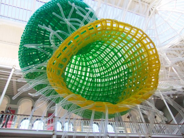 美国艺术家Jason Hackenwerth,出生于1970年,现居纽约,擅长气球编织雕塑,其作品看起来就像巨大的虫子或者外星生物。该作品是为爱丁堡国际科学节所创作的,放置于苏格兰国家博物馆大展厅中。