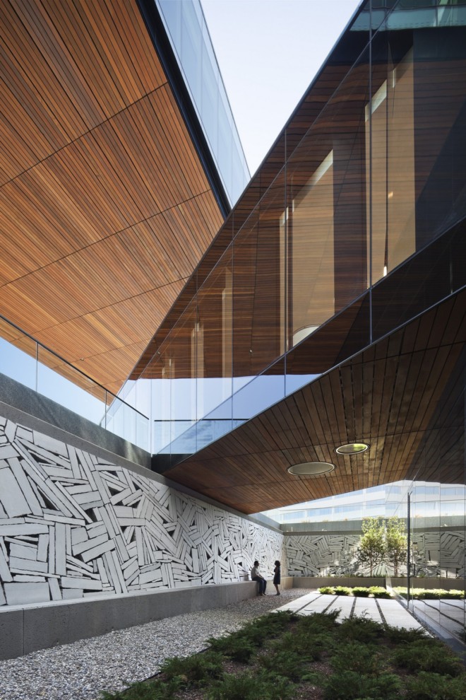 周围金字塔形的景观进一步突出了项目场地,有助于这座位于郊区的办公楼形成动态的视觉存在感。