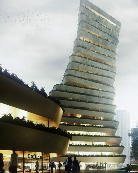 阿普拉(upla.cn)3月10日消息:arhimetrics+ enota设计的新商业和住宅建筑,形状像堆叠的起伏的地层,旨在连接周围多样的城市景观。
