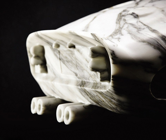 该车模的原型车时速可达278千米,而模型车则没法达到这个速度,因为该模型车由一整块意大利大理石雕刻而成。制作车模使用了最尖端的技术,首先激光扫描了真实版的GTO,在3D建模软件里调整了输出数据。然后,文件发送到计算机控制的五轴机上打磨大理石条纹,之所以选择这种条纹,是因为它给人一种高速度的幻觉。最后,由手工完成,以确保每个细节都极为精致。模型长47.2英尺,宽18.1英尺,高13.4英尺。