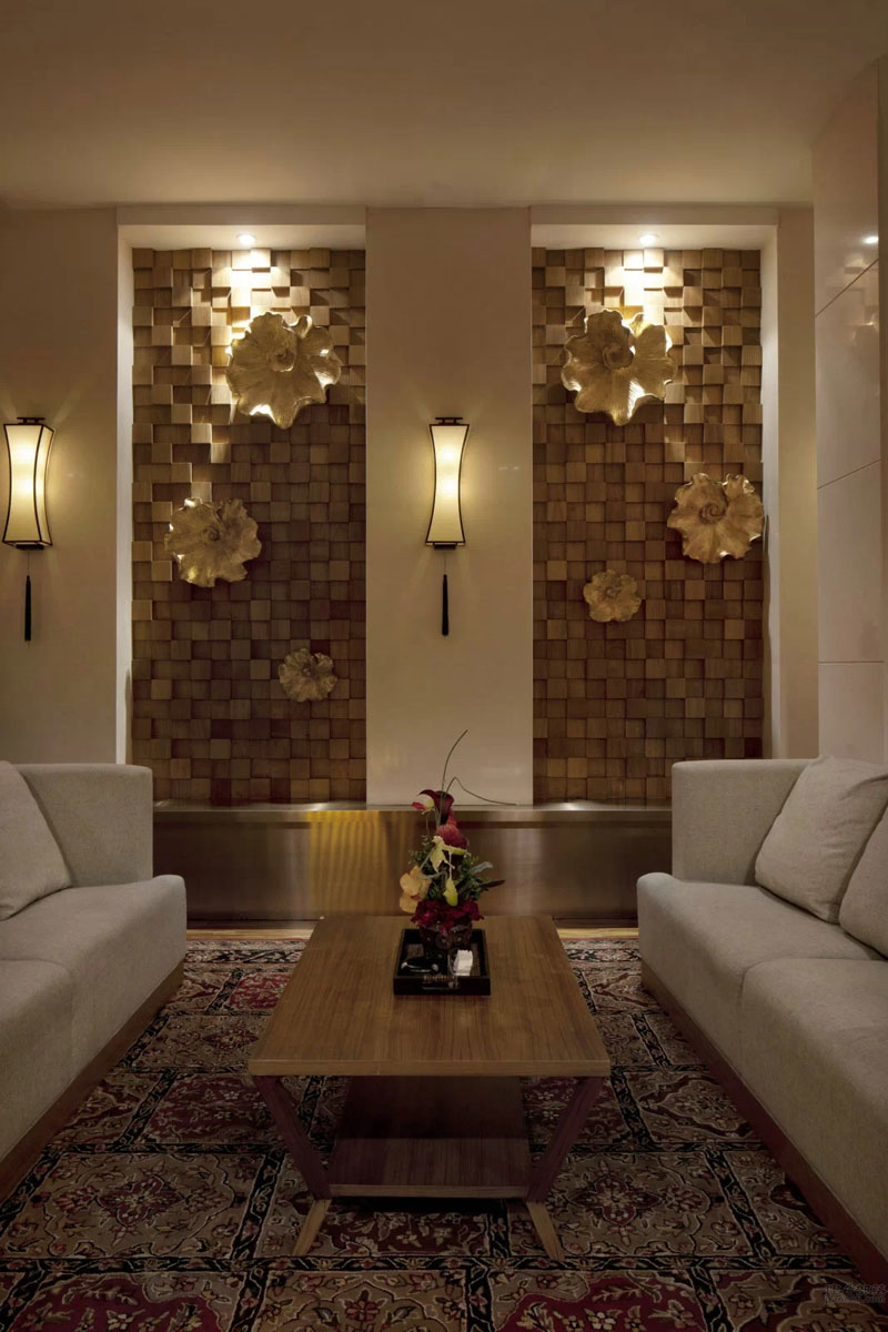近人的空间尺度和华丽大气的氛围。采用预制混凝土构件或者价格便宜的本地建材进行建造。 迎合需要豪华感觉的面子心里。