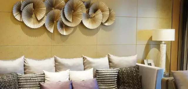 客厅沙发墙采用数扇形拼接,让整体更具艺术气息。