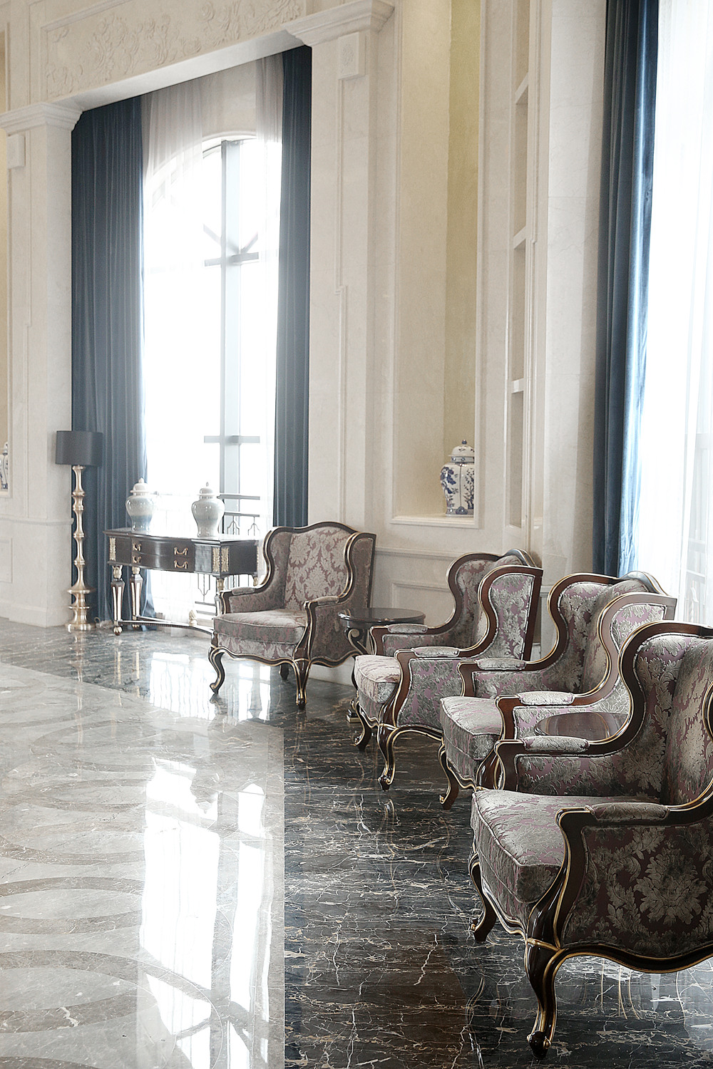 用料为:伯爵米黄、意大利黑金花、木纹黄、阿富汗黑金花.
