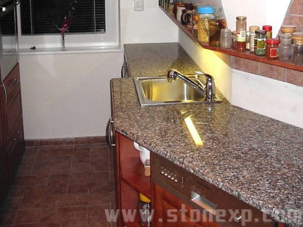 简单描述:此组石材台面板是与木材厨柜相结合,造型简洁实用,石材台面板的防水及易清洁等功能都使得它成为厨房新宠。