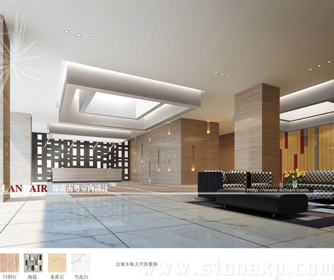 作为业主的入户大堂,简洁明快而又不失尊贵豪华。以米黄的大理石为基本色调,配以红色的背景墙造型,给人以吉祥富贵的感觉,几何形的现代吊灯,个性的家私,精美的装饰品,都突显了空间气质上的不俗。