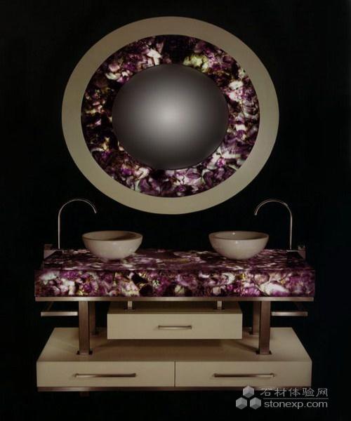 如玛瑙和水晶宝石拼版卫浴洗脸盆。
