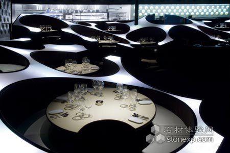 印度孟买蓝蛙休闲酒廊被用来作为一个音乐场馆,一个复杂的录音工作室,一家餐厅,酒吧和现场音乐演奏的场地。不同大小的圆柱亭座椅之间容纳4和10人,并安排在不同的高度,以便错开各级高度的观赏视线。反射灯光的8毫米压克力板,反射出不同的灯光设计。崎岖不平的触感墙壁有助吸纳噪音。