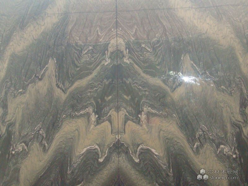 材料特征:大理石类,材料颜色变化较大、纹路乱,每块石头的纹路变化都不一样,主要是以紫色和绿色为主,适合做对拼板,做对拼板会有动物或者山水的效果,此料有大料,而且市场上产量较大,但因颜色纹路变化较大,不适合大面积使用,一般都是用来做背景墙、台面或者点缀之用。